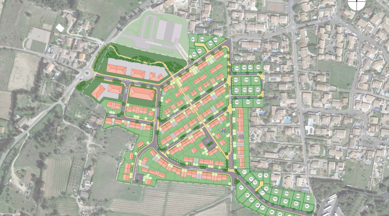 Lespignan, au cœur d’ une contrée touristique, fait bénéficier à ce quartier les Terres de Vivios situé au sud du village, d’une prise directe avec le milieu naturel environnant, à l’ image de son centre ancien alliant une mixité et variété d’ habitation.